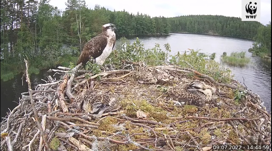 Ja jos ei ole muuta tekemistä niin aina voi katsella mitä kalasääksille kuuluu. Poikaset ovatkin jo varttuneet isoiksi. Minulla ei ole käsitystä milloinka ne lähtevät pesästä, mutta ei siihen varmaan kovinkaan kauan enää mene. Ne ovat melkein jo emojen kokoisia.
