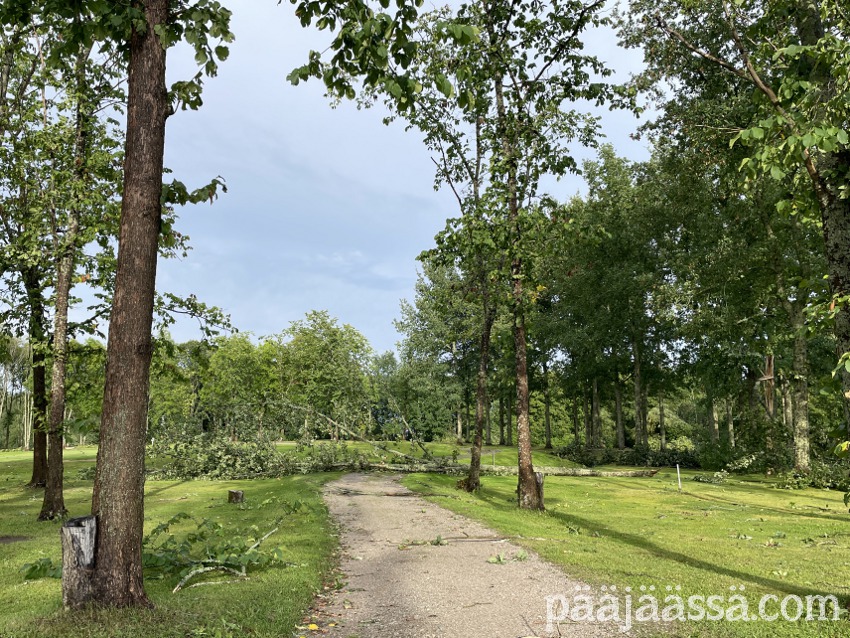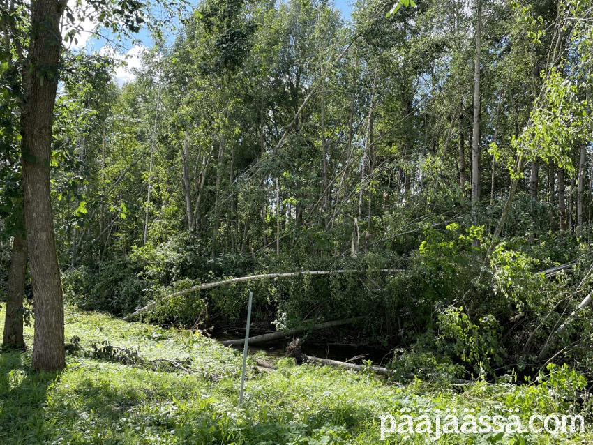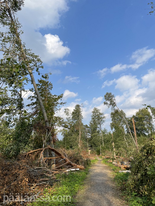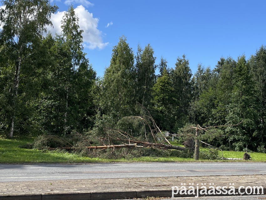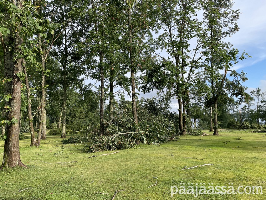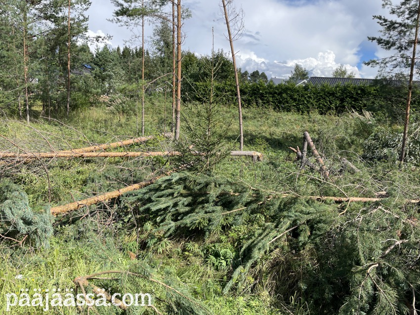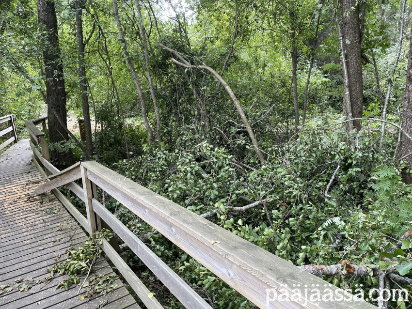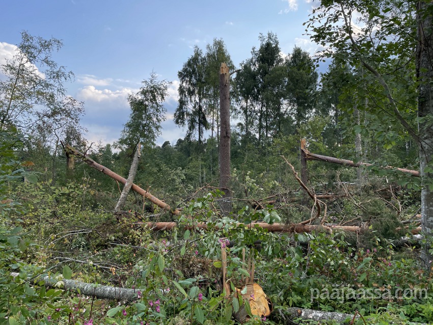 Kruisailin lintutornilta Seppoinpolkua pitkin Lietteen uimarantaa kohti. Ensimmäisenä kohtasin suuren kuusen juurakon, joka oli muistutuksena trombista mikä oli sen kaatanut. Juurakko oli todella suuri. Jos olisin seisonut sen vieressä, se olisi minua paljon korkeampi. Aikamoinen voima tuollaisella trombilla on. Mutta jatkoin matkaa…