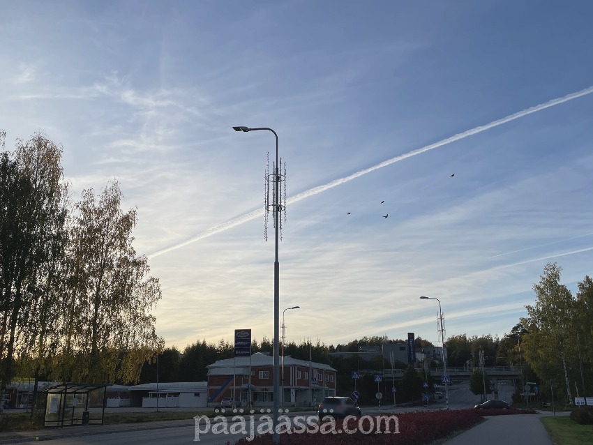 Tiistaina oli kuitenkin vielä kirkas keli ja sain ihastella taivaalta lentokoneiden tekemiä raitoja. Mitenkä monta niitä koneita tuolla taivaalla oikein lentää? Onneksi siellä lensi muutama naakkakin. Näin muuten Immalanjärven uimarannalla, Lietteellä, yksinäisen kanadanhanhen. Luulisi, että se olisi lentänyt jo kavereidensa kanssa pois, mutta se vain makasi maassa hietikolla. Yritin olla häiritsemättä sitä. Oliko se jotenkin loukkaantunut tai sairas? Yritän olla yleensä mahdollisimman huomaamaton kun menen luontoon. En halua, että kukaan tai mikään häiriintyy siitä, että olen siellä. Pitänee käydä tarkistamassa jos tuo lintu on vielä siellä oleilemassa, ja ottaa mukaan vaikka sille soveltuvaa ruokaa. Jos se on siellä, niin sillä on jokin ongelma josta pitää ilmoittaa eteenpäin.