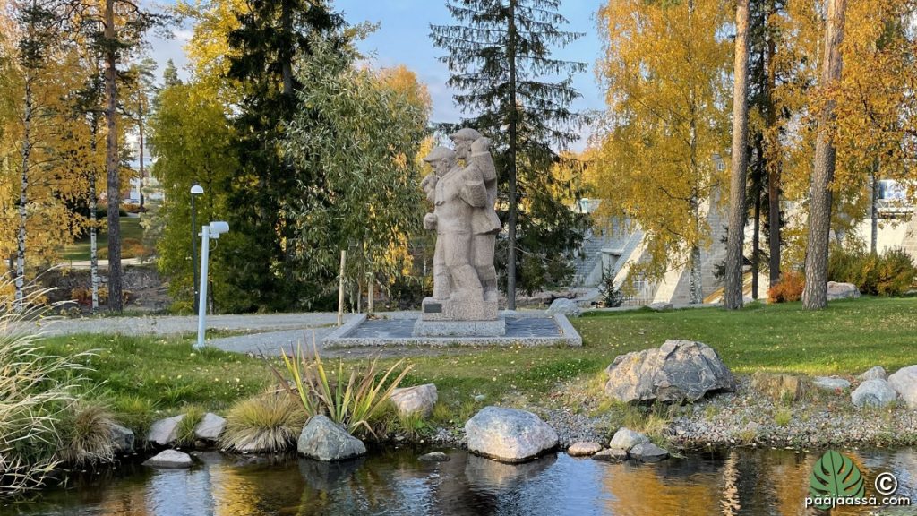 Puistossa oli myös jokin patsas, jota en sen kummemmin tajunnut käydä tutkailemassa. Täytyy käydä katsomassa patsasta vähän lähemmin joku toinen kerta. Tästä kuvakulmasta patsaan taustalla puiden takana näkyy Imatrankosken pato.