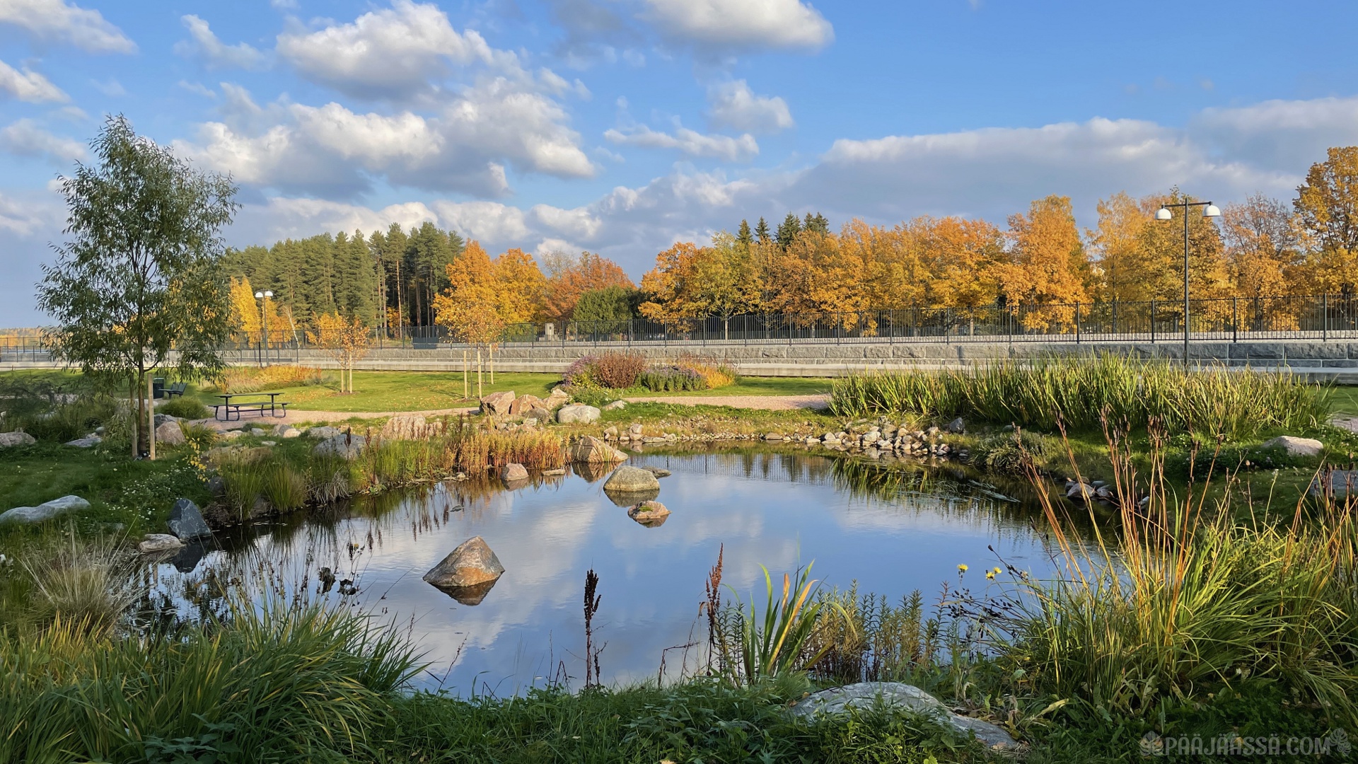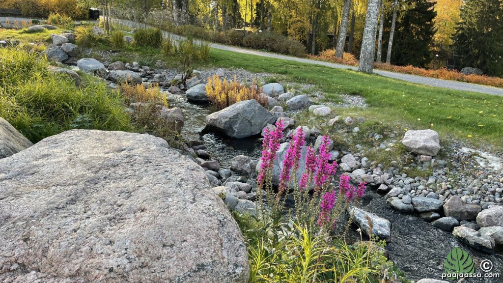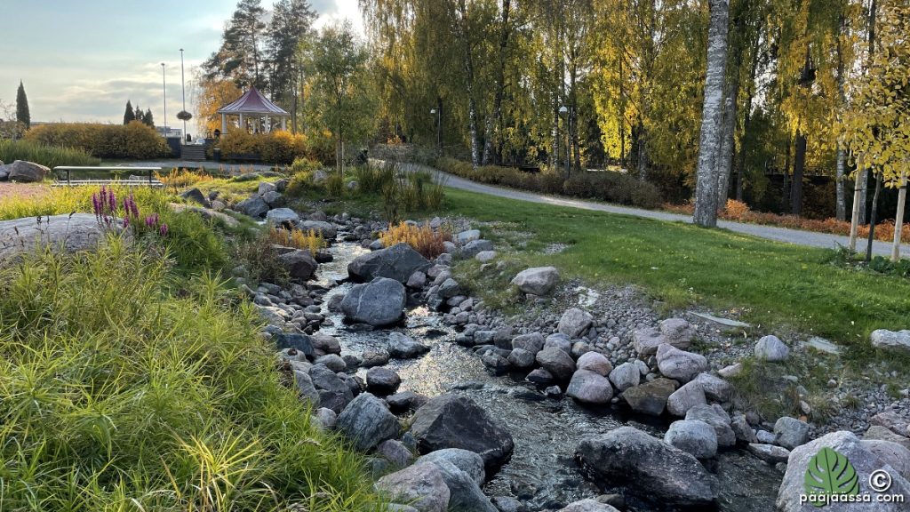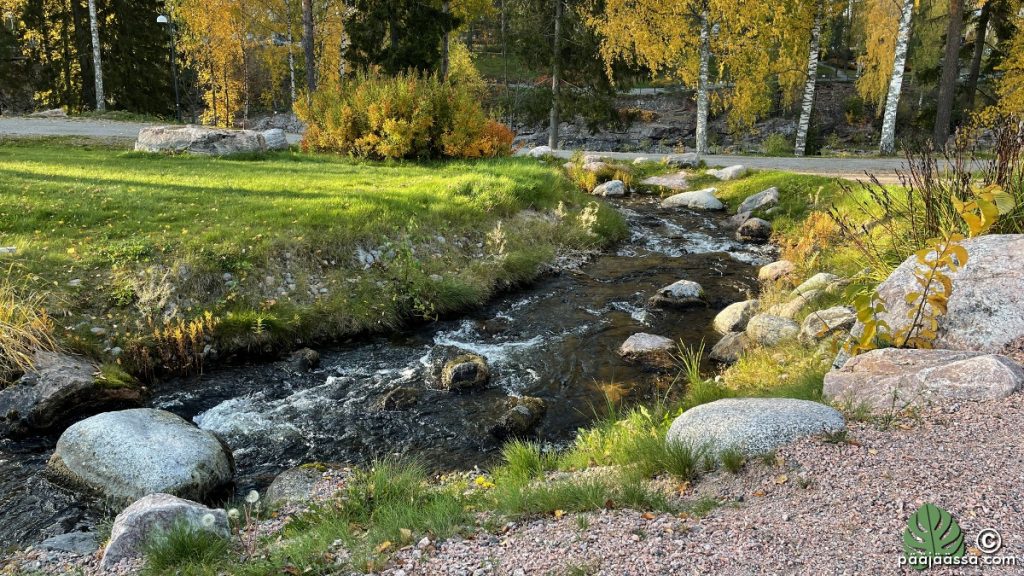 Imatra, Paikat / Matkailu, Viherpiiperö / LuontoImatralla on tällainen ihana nähtävyys kuin kaupunkipuro. Se on rakennettu vuonna 2014 Imatrankosken padon ja voimalaitoksen altaan välissä olevaan Kruununpuistoon. Kävin katselemassa 2.10.2021 millaiselta paikka näyttää tällä hetkellä, ja en ollut uskoa silmiäni kuinka kauniiksi se on tullut! Vielä vuonna 2015 penkereet olivat pelkkiä kivikasoja, mutta nyt ne ovat ”kasvaneet umpeen” erilaisista kasvustoista, niin kuin oli varmasti alkujaan tarkoituskin. Syksy toi vielä omaa leimaansa kaupunkipuron ympäristöön. Otin nämä kuvat ihan kännykällä.