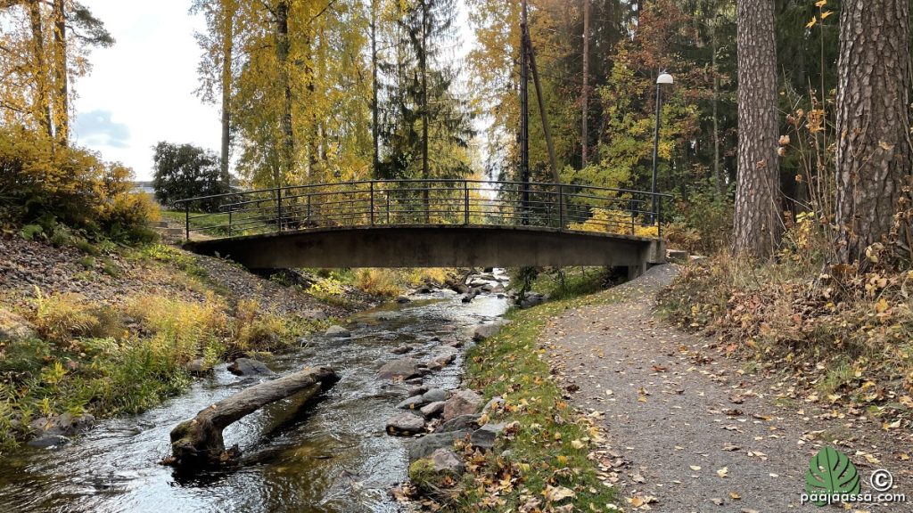 Jätin autoni voimalaitoksen puoleiseen parkkiin ja siitä lähti suoraan portaat puron varteen. Portaiden jälkeen oli puron ylittävä silta.