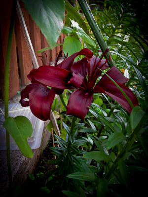 Ensimmäinen lilja avasi nuppunsa reilut viikko sitten ja kesäkurpitsaan on ilmestynyt kukkia 🙂