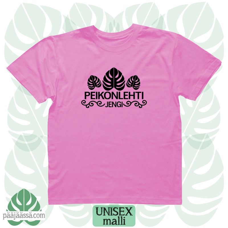 Peikonlehden kuvio on ”piirretty” omasta peikonlehdestäni, ja tämä peikonlehti-paita on saatavilla vain tästä verkkokaupasta.