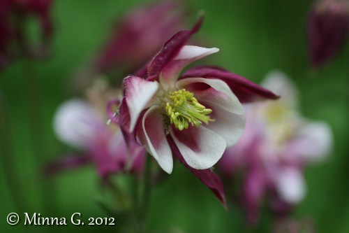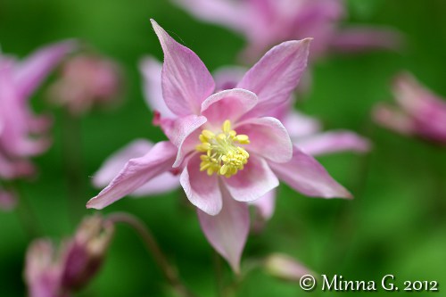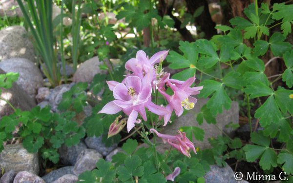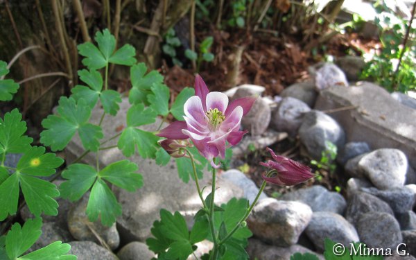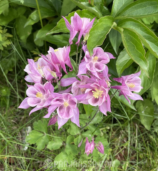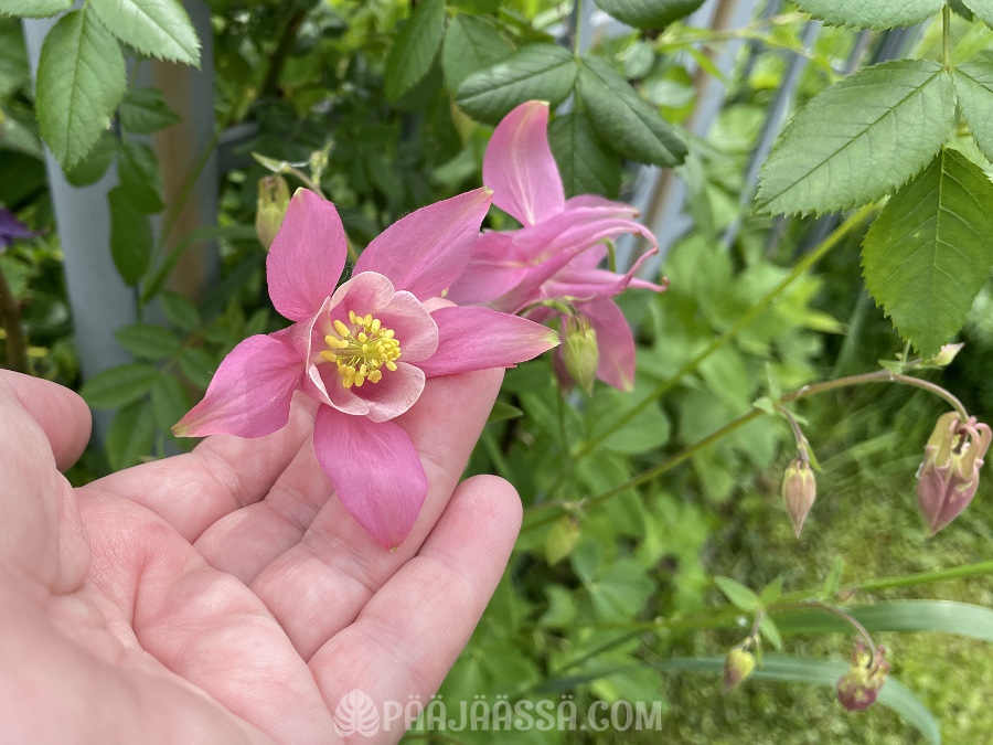 Lupasin sukulaiselle, että annan hänelle vaaleanpunaisten akileijojen juurakoita. Otin parista eri kukasta kuvan, ennen kuin kaivan juurakot ylös. Vien ne sitten hänelle juhannuksena. Tässä on tavallinen lehtoakileija vaaleanpunaisena.