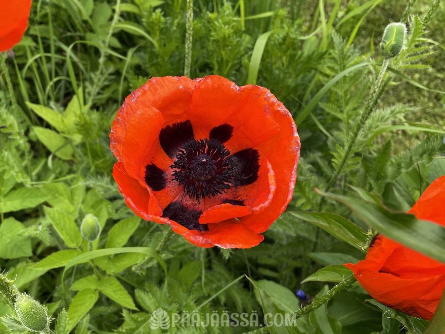 Viimeisenä, mutta ei missään tapauksessa vähäisempänä, on avannut nuppunsa Idänunikko. Tämä on niin kaunis kukka että hohhoijaa! Sain kuin sainkin sen itämään äidin kukkapenkissä monen vuoden yrittämisen jälkeen. Olen tosiaankin siirtänyt tämän, vaikka unikoista toisinaan sanotaan, että niitä ei voi siirtää. Yleensä ne leviää siemenistä kasvupaikan läheisyyteen. Pitänee levitellä siemeniä pariin muuhunkin paikkaan.