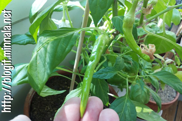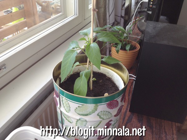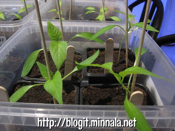 Chilit olivat itäneet todella hyvin. Hybridistä itivät kaikki neljä laittamaani siementä, ja tavallisesta chilipaprikasta iti 7/8 siementä. Kaikki on nyt koulittu, ja laitettu omiin kasvuruukkuihinsa. En laittanut näille vielää lannoitetta, mutta kanankakka on tuossa odottelemassa valmiina ja oli tarkoitus tässä lähipäivien aikana alkaa sieltä täältä upottamaan rakeita multaan taimien juurille. Chilit tarvitsevat hieman enemmän kasvutilaa juurilleen, niin laitoin ne nyt tässä vaiheessa jo hieman suurempiin kasvuruukkuihin. Niitä mahtuu tuollaiseen karkkirasiaan sopivasti neljä kappaletta. Niissä on sitten helppo siirrellä chilit aina ikkunalta toiselle, missä auringonvaloa nyt sattuu milloinkin olemaan.