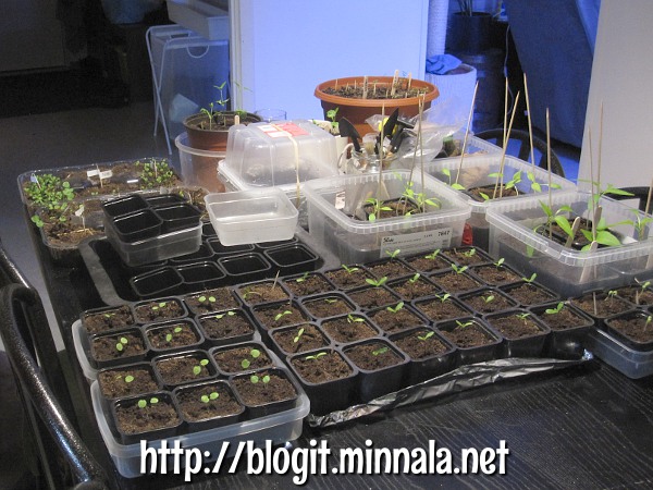 Vielä jäi tekemistä… en koulinut yhtään punapäivänkakkaran taimea, ja niiden vuoro on tässä lähipäivien aikana… mahdollisesti jo tänään. Saanpahan sitten laitettua multahässäkät hetkeksi pois silmistäni ja aloittaa kämpän siivoamisen, nimittäin pääsiäisenä minulle tulee vieraita. Loput taimen alut saavat kasvaa vielä rauhassa kunnes ovat sen kokoisia, että kestävät siirtämisen.