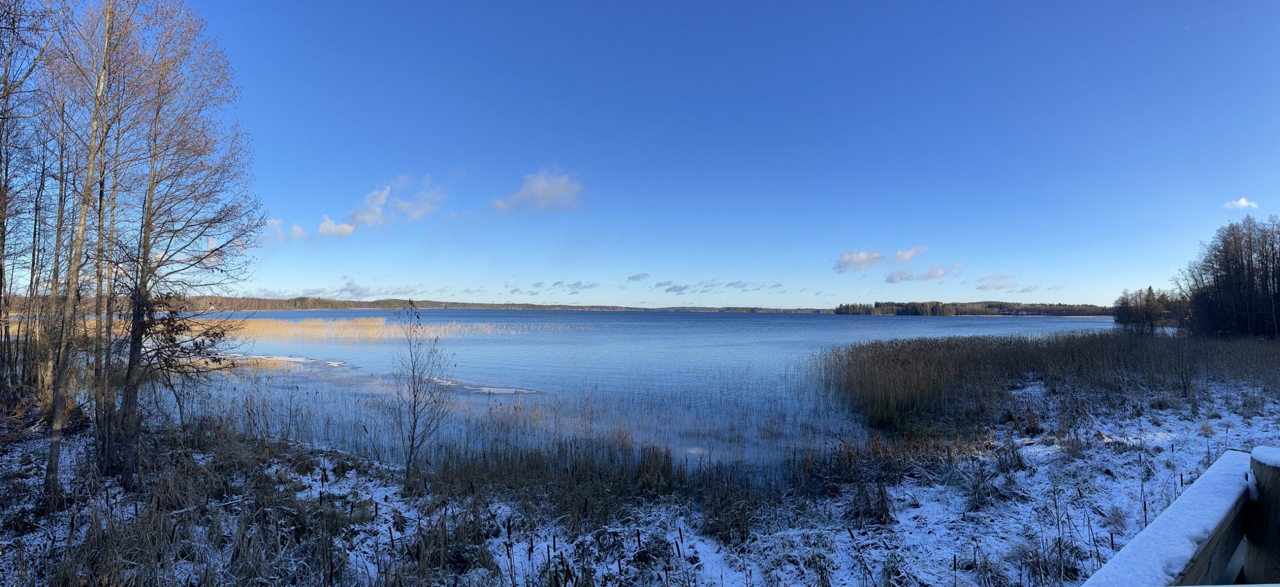 Olen taas hukuttanut itseni töihin, kun huomasin joitain asioita, mitkä on pakko muuttaa. Minulla on onneksi yksi ystävä, joka voi näissä asioissa auttaa. Muutoin olen omillani. Pidimmekin pitkän työpalaverin asioihini liittyen. Nyt voisi vähän hengähtää ja ihailla maisemia. Maisemien ihailu auttaa toisinaan mielialoihini, varsinkin jos maisemat ovat silmiä hivenen kauniit. Kun ensilumi oli satanut, seuraavana päivänä oli postikorttimaisemat.