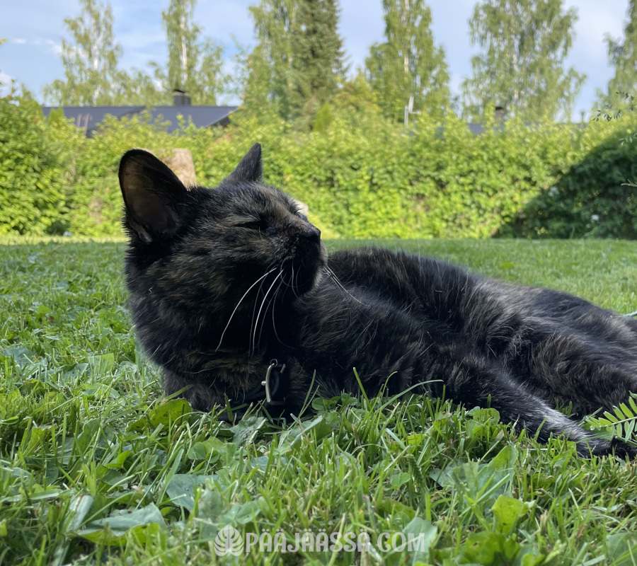 Kiksu oli ollut koko elämänsä aika terve, vasta nyt kesällä sillä todettiin kilpirauhasen vajaatoiminta. Noh, ihan yleistä kissoilla, kuulemma. Se on sitten ihan itsestä kiinni mitenkä tämä hoidetaan, ja aina kaikkea ei voi hoitaa. Ihmisillä nämä asiat ovat jotenkin aivan erilaisia. Me kun pystymme kommunikoimaan asioissa. Tai voivathan eläimetkin, mutta emme tunnista niitä ”sanoja” ehkä tarpeeksi hyvin. Tämä pieni tyttökisu oli kuitenkin todellinen selviytyjä. Kerron tarinan sitten joskus myöhemmin ehkäpä juuri siinä sadun muodossa. Nyt on kuitenkin vain hyväksyttävä tosiasia, että tämä pieni kilpparityttö ei enää tassuttele minuakaan vastaan kun menen vanhempiani morjestamaan.