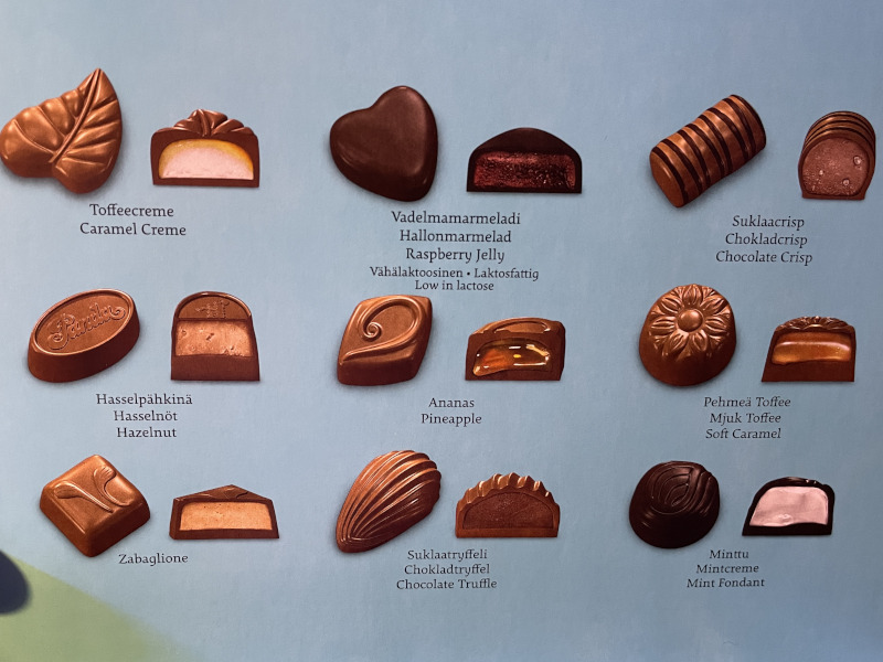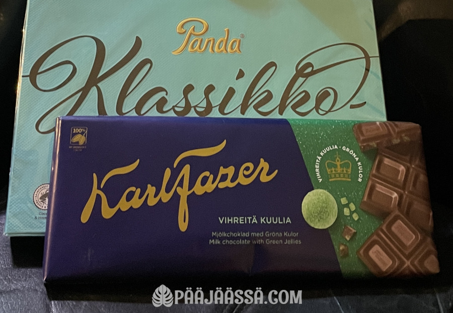 Olen syönyt mittapuuni mukaan ennätysmäärän suklaata. Saksalaisen kauppaketjun kassojen läheisyyteen oli ilmestynyt yksi lemppareistani, Pandan klassikot-suklaakonvehtirasiat. Sellainen piti ottaa mukaan. Tässä suklaarasiassa ei ole yhtään pahanmakuista karkkia! Jos jotain negatiivistä tästä väkisin hakee, niin rasiassa saisi olla vielä toinen kerros näitä herkkuja. Nyt niitä on vain yksi, ja siitähän ei tule kuin… noh, en tule vihaiseksi. Kyllä minulla useita päiviä menee tämän tuhoamiseen vaikka karkkeja rasiassa onkin vain 16 kappaletta.