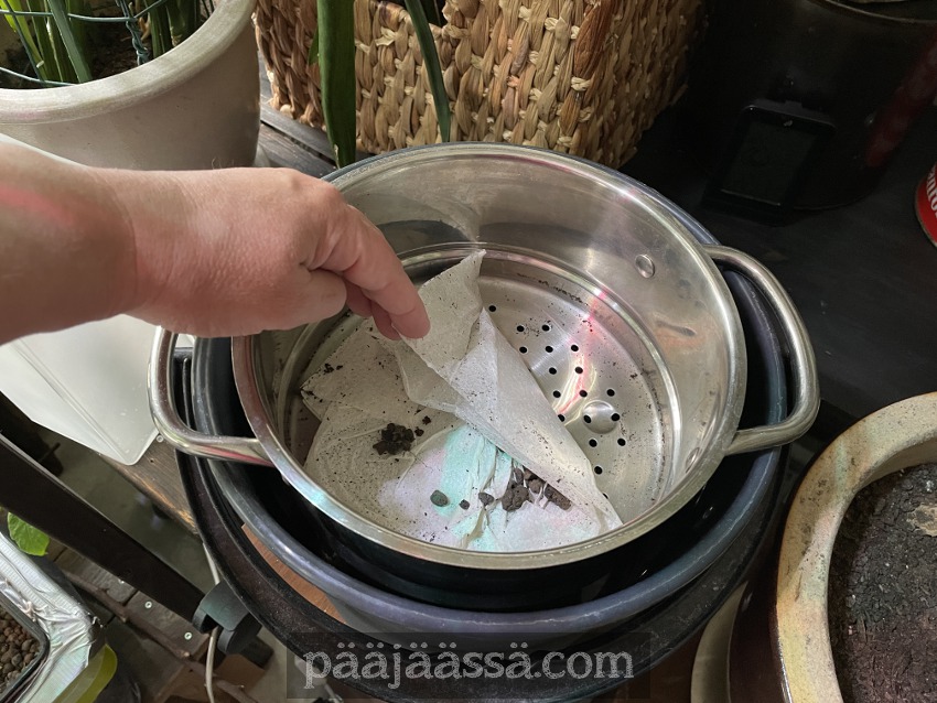 Laitoin koulitut taimet muutamaksi päiväksi lännenpuoleiselle ikkunalle kissojen näköalatason päälle, ennen kuin siirsin ne auringosta nauttimaan.