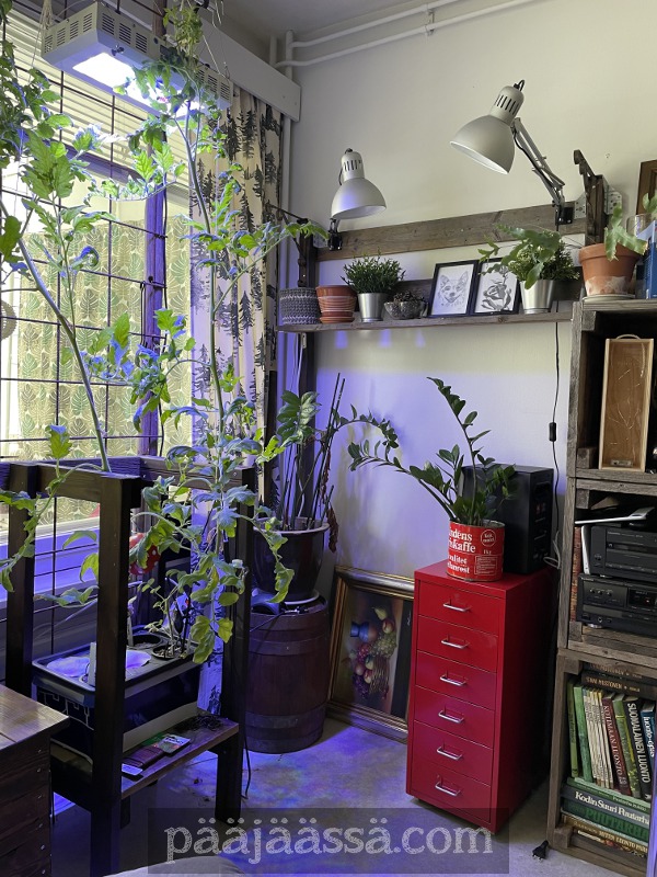 Paljon on vielä tekemättä, mutta onneksi edes tähän asti kylvetyt hyötykasvien siemenet ovat itäneet, ja lähteneet kasvuun. Laitoin chilejä tosin kolmea eri lajiketta, mutta parhaiten itivät Cayenne (perus-chili) ja yhden taimen sain jostain tuntemattomasta chilistä. Muut eivät oikein itäneet, tai jäivät kitukasvuisiksi. Asiaan saattoi tosin vaikuttaa käyttämäni turvenapit. Kun ne turposivat, niihin jäi sellainen kangasmainen reunus. Niistä on varoitettu muun muassa orkideojen kanssa. Itse asiassa miltei kaikissa kaupasta ostettavissa pelargonioissakin on paakku paikoillaan. Kasvi pitää ottaa ruukusta ylös ja se kangasmainen reunus pitää poistaa varovasti. Muutoin kasvi tukehtuu.