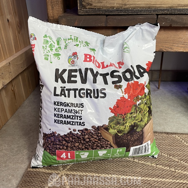 En hommannut mitään erikoisia kukkaruukkuja tätä kokeilua varten. Tomaattien viljelijät varmaankin käyttävät taimille jotain reiällisiä verkkoruukkuja, mistä vesi ja juuret pääsevät kauttaaltaan ”kulkemaan” läpi. Itse käytin ihan tavallisia neliskanttisia mustia taimiruukkuja. En halunnut törsätä rahaa sen enempää tässä vaiheessa, koska kyse oli kuitenkin kokeilusta. Pohjamateriaaliksi valitsin ihan tavallisen Biolanin kevytsoran.