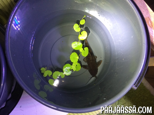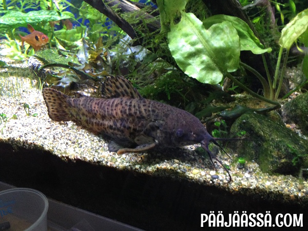 Tässä muuten yksi syy, miksi minulla on akvaario: alun perin halusin, että kissoillani olisi virikkeitä kotona, koska asumme kerrostalossa. Kesällä toki pääsivät vierailemaan ”mummilaan” ja siellä pihalle, mutta muutoin olemme olleet koko ikämme kerrostaloasukkeja 🙂 Tämä hurmuri tässä on Uuno (synt. 2002). Minulta on monta kertaa kysytty, että eikö pelota pitää avoakvaariota, niin ei tuo kyllä tosta altaaseen taida enää tämän ikäisenä haluta molskahtaa. Avoakvaario minulla on ollut vasta kaksi vuotta (vuodesta 2014) kun tulin hankkineeksi tuollaisen LED-valaisimen loisteputkien sijaan.