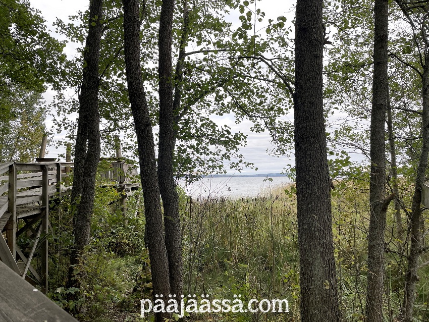 Ajelin takaisin kotia päin Vuoksen vartta pitkin. Vuoksi oli aika tyyni ja sen rannalla olevat puut heijastuivat kauniisti veteen. En pysähtynyt ottamaan kuvia, koska olin jo aika uuvuksissa. Mutta jostain syystä halusin vielä poiketa lintutornille, ennen kuin menen kotiin. Edellisestä kerrasta olikin jo aikaa, kun olin käynyt siellä.
