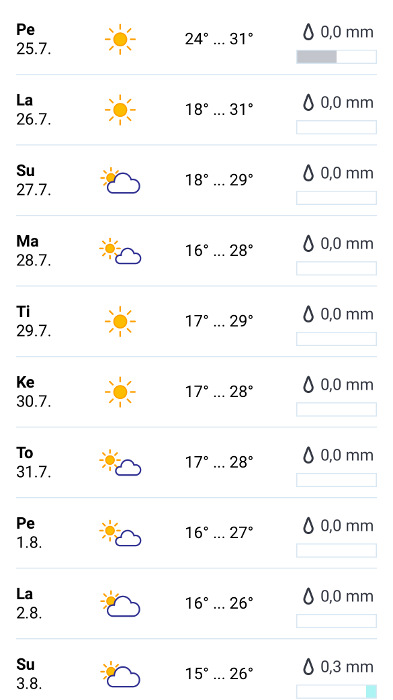 Sääennuste näyttää tällä hetkellä sellaiselta, ettei ole ihan hetkeen mitään asiaa touhuamaan parvekkeelle, ainakaan päivällä. Muutaman päivän ollut jo +30C ja sama näyttää jatkuvan. Nyttenhän se parveke pitäisi olla kuosissa, eikä tuolla tavalla sotkussa, niin kuin minulla on! Noh, minkäs teet. Olen kyllä aikeissa viedä sieltä yhden sinkkiastian vanhempieni pihalle lintuja varten. Jos ne vaikka oppisivat pulikoimaan siinä. Sadevesitynnyrissä oleva vesi nimittäin hupenee ja se menee juomakelvottomaksi tällaisilla keleillä. Sitä paitsi, se vilisee hyttysentoukkia. Noh, onhan niissä linnuille syömistä!