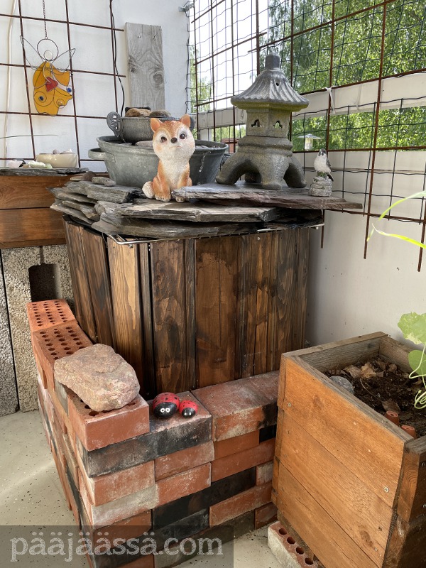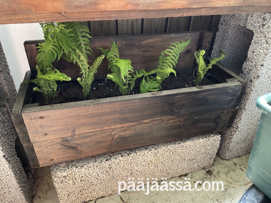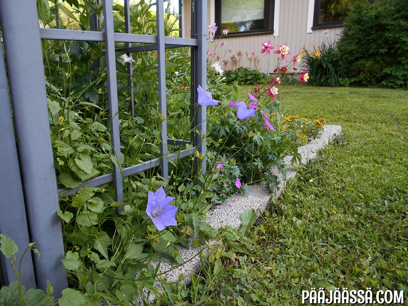 Tätä nurkkaustahan ei enää ole, vaan olen rakentanut tämän kukkapenkin uudelleen. Ja se menee tänä vuonna saneeraukseen villiintyneiden perennojen vuoksi. Siihen ei mahdu enää kasvamaan mitään, kun isot perennat ovat vallanneet sen. Kuvan vasemmassa etunurkkauksessa on harmikseni kadonnut japaninjaloangervo, joka on saatu äidin naapurista. Tämä harmittaa kovasti. Muistaakseni muurahaiset tekivät tämän juurakolle hallaa, ja kaivelivat niin paljon käytäviä ympärille, ettei kasvi saanut enää kunnolla vettä. Olen ikionnellinen, jos tämä lähtee vielä kasvamaan!