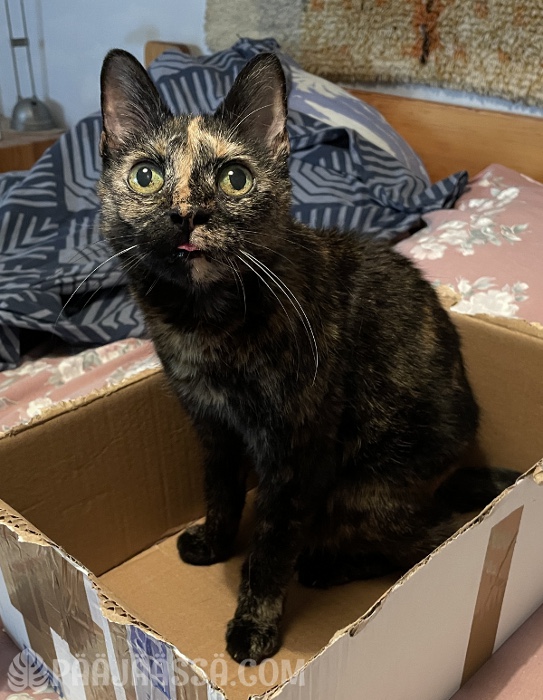 Kiksu oli ollut koko elämänsä aika terve, vasta nyt kesällä sillä todettiin kilpirauhasen vajaatoiminta. Noh, ihan yleistä kissoilla, kuulemma. Se on sitten ihan itsestä kiinni mitenkä tämä hoidetaan, ja aina kaikkea ei voi hoitaa. Ihmisillä nämä asiat ovat jotenkin aivan erilaisia. Me kun pystymme kommunikoimaan asioissa. Tai voivathan eläimetkin, mutta emme tunnista niitä ”sanoja” ehkä tarpeeksi hyvin. Tämä pieni tyttökisu oli kuitenkin todellinen selviytyjä. Kerron tarinan sitten joskus myöhemmin ehkäpä juuri siinä sadun muodossa. Nyt on kuitenkin vain hyväksyttävä tosiasia, että tämä pieni kilpparityttö ei enää tassuttele minuakaan vastaan kun menen vanhempiani morjestamaan.