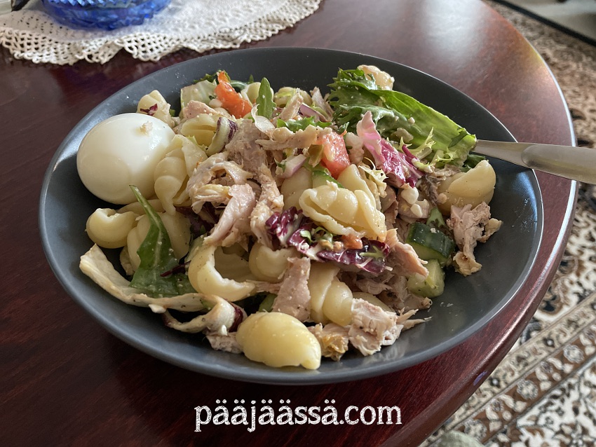 Parvekkeella lensi vielä äsken joku ötökkä, ja näin eilen vielä pitkähäntäisen pistiäisen kiipeilemässä ikkunaa vasten. Olikohan se etsimässä talvehtimispaikkaa. Nyt se tulee tietysti rehujen mukana sisälle. Pervekkeelta pitää muutenkin tuoda tavaraa sisälle pakkasen alta. Tekemistä siis tiedossa tälle iltapäivälle. Pavilijongin seinän voisi ottaa alas, ja sen mukana pitsiverhot ja koristevalot. En usko, että koristevalot pitävät pakkasesta. Pavilijongin rungon avoimet putket on tilkittävä jollain, ettei sinne pääse ötököitä. Kohta tulee kiire.