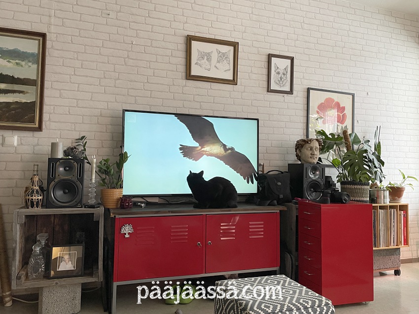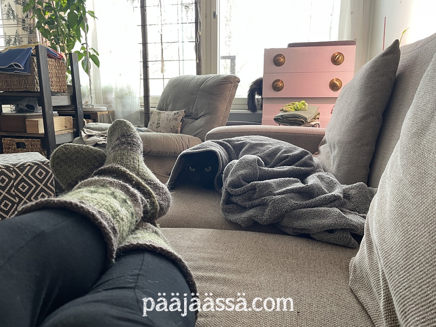Ehdinkin tässä välissä on siirtämään huonekasvit keittiöstä olohuoneeseen ja imuroimaan vieressäni olevan nurkkauksen, johon on tarkoitus siirtää vinyylilokerikko. Vinyylitkin on siirretty nurkkaukseen odottelemaan lokerikon virittelyä. Siitä pitäisi ensin maalata jalat. Unelmia pitää olla, ja haaveena minulla onkin, että juuri tuon vinyylilokerikon päälle saisi joku päivä ihka aidon vinyylisoittimen, jolla voisi sitten kuunnella levyjä. Löhöilypaikkakin on tässä vieressä, jossa näitä blogejakin kirjoittelen. Kun vinyylilokerikko on siirretty, paikalle sai kirjalaatikon. Nyt alkaa multitaskaaminen!