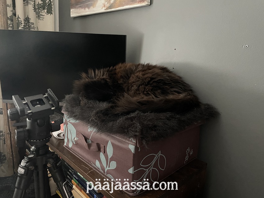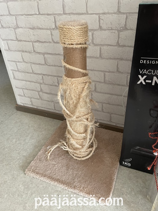 Kissat ovat tulossa lokakuun puolen välin jälkeen viikoksi hoitoon, niin parveke pitää olla sellaisessa kuosissa, ettei sinne tarvitsisi mennä. Voisin viritellä kisuille loikoilupaikan parvekkeen oven eteen. Jouluksi siihen on tulossa joulukuusi. Se on varmasti paras paikka sille. Kissojen raapimistolppa kaipaa tuunausta. Se on purkautunut ikävästi. Muistaakseni minulta löytyy jostain köyttä, mitä kieputetaan tolpan ympärille.