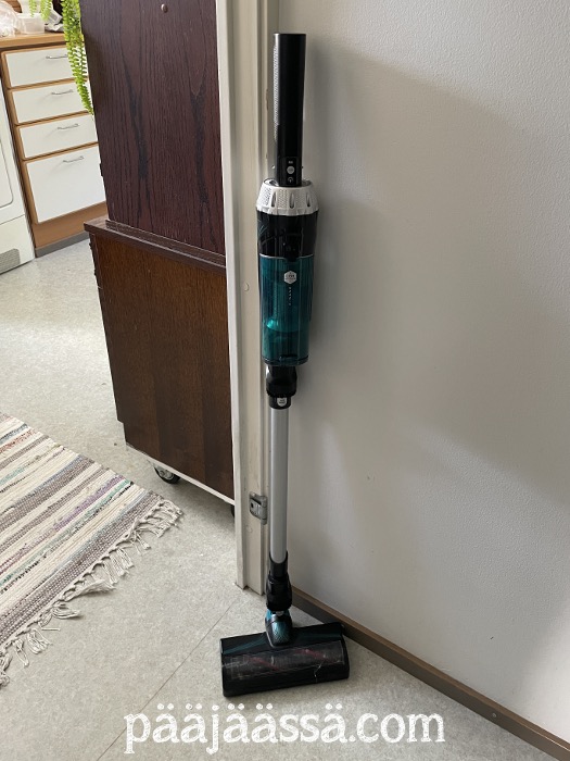 Olen ollut tyytyväinen uuteen varsi-imuriin. Aluksi ihmettelin, kun se vaikutti sotkevan enemmän kuin siivoavan, että näinköhän tuli tehtyä ihan idioottiostos. Mutta sitten aloin tarkastelemaan imuria lähemmin, ja huomasin, että sen suulake oli tukossa. Sinne oli jäänyt nenäliina. Kun poistin sen, homma aloi taas pelittää. En ole ollut uskoa silmiäni, millaisen määrän roskaa tuo oikein imuroi. Ihan käsittämätöntä. Tietty, edellisen imurin säiliötä ei tullut tarkasteltua samalla tavalla kuin tämän, josta näkee muutekseen läpi. Katselin ohjevideoita yksi ilta, kun piti selvittää milloinka se on täysin latautunut. Sehän ladataan sellaisessa telineessä.