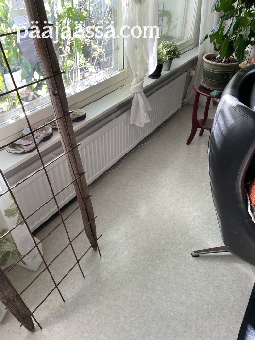 Otinkin itseäni niskasta kiinni ja siirtelin ikkunan ääreen tulevan kukkatason sille varattuun paikkaan. Samaiselle seinustalle on tarkoitus tuoda keittiöstä huonekasvit. Kaikista valoisin paikka asunnossani on parvekkeenpuoleinen ikkunasto. Jos talvella paistaa aamupäivällä aurinko, se paistaa juurikin noista ikkunoista sisään. Ikkuoiden kohdalle on myös porattu amppeleille reikiä kattoon, johon kasvivaloja saisi viriteltyä.