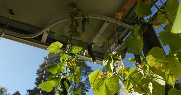 Seuraavassa vielä satoa tältä vuodelta. Takimmainen kurkku tipahti tänään vielä tuolta katon rajasta alemmas, niin poimin sen sitten suihini!