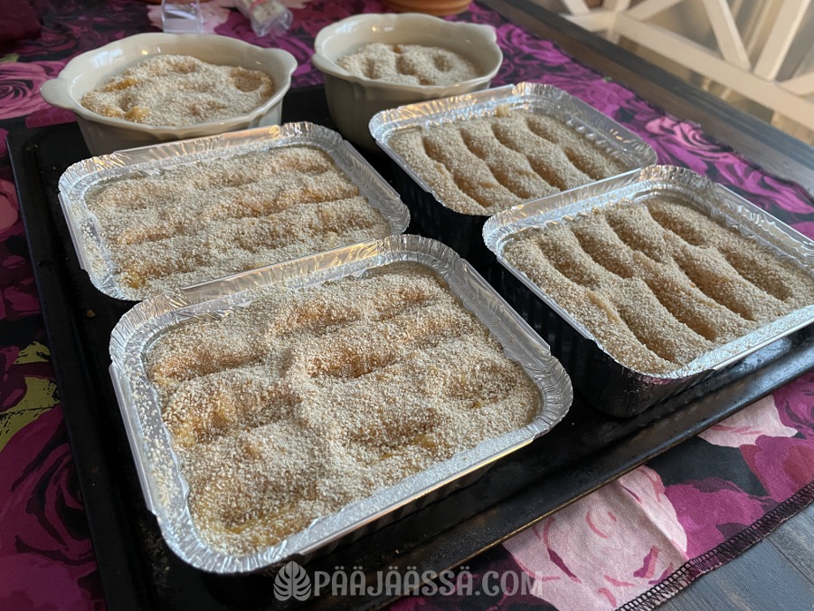 Laatikoiden tekemisestä on tullut itselleni mukava traditio vuosien aikana, ja se onkin tavallaan lahja minulta omalle perheelle. Meitä kun on vain minä ja veljeni, sekä vanhempamme. Millaiseksikohan kaikki muuttuu sitten kun heitä ei enää ole? En halua edes ajatella, mutta onhan tosiasiat tiedostettava. Heillä kun on ikääkin jo… minä olen jo 50!