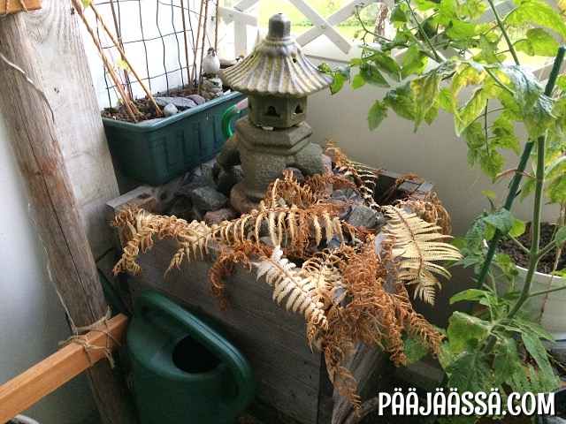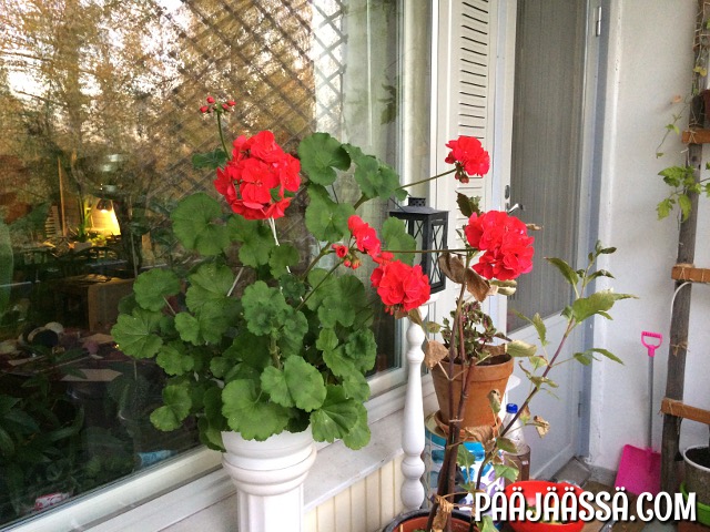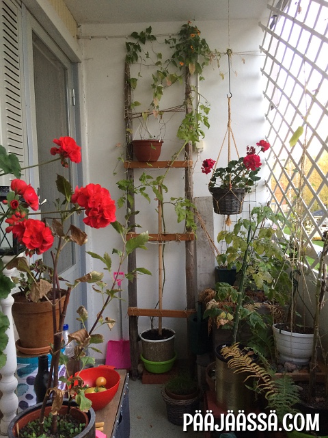 Sain paikallisesta kebab-mestasta sopivan kokoisia peltipurkkeja, joita voi käyttää esim. kukkaruukkujen suojina. Toimii mielestäni myös sisustuselementtinä. Toki näitäkin voi maalta, jos ei pidä peltipurkin väristä 🙂 Kesällä nämä ovat kivan näköisiä parvekkeella.