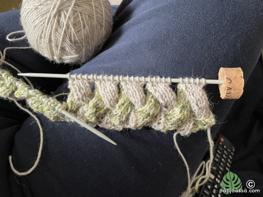Koska villapaita oli tuossa pisteessä oli hyvää aikaa aloittaa taas uusi käsityö. Purin yhden villapaidan, mikä oli mielestäni ihan kauheaan suuntaan tekeytymässä. Siitä tuli melkonen määrä nöttösiä (pieniä lankakerän jämiä), joista ajattelin sitten neuloa polvisukat. Juu, siis minulla on se hirvittävä neuloosi, mikä nyt tuntuu olevan yhdellä sun toisella tänä päivänä. Ainakin se on tullut esiin COVID-19 – pandemian aikana. Minulla on tälläkin hetkellä vaikka kuinka monta käsityöprojektia tekeillä. (kirjoittelen niistä toisinaan täällä)