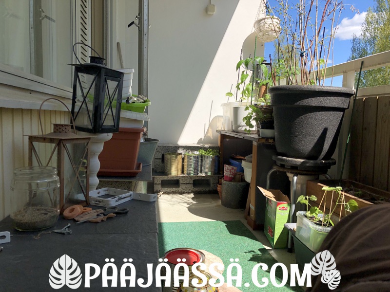Kun kaikki pois heitettävät romppeet on saatu vietyä pois, parvekkeelle tulee yllättävän paljon tilaa. Ja onhan minulla suunnitelmia mitä aion laittaa kasvamaan! Eihän se nyt vaan ole kohdallani mahdollista, ettei mitään laittaisi. Parvekkeen aurinkoisin paikka on varmastikin parvekkeen oven takana, ja siihen seinustalle aion laittaa avomaankurkkua ja yrttejä. Kurkku saa sitten taas rauhassa kiipeillä ritilässä.