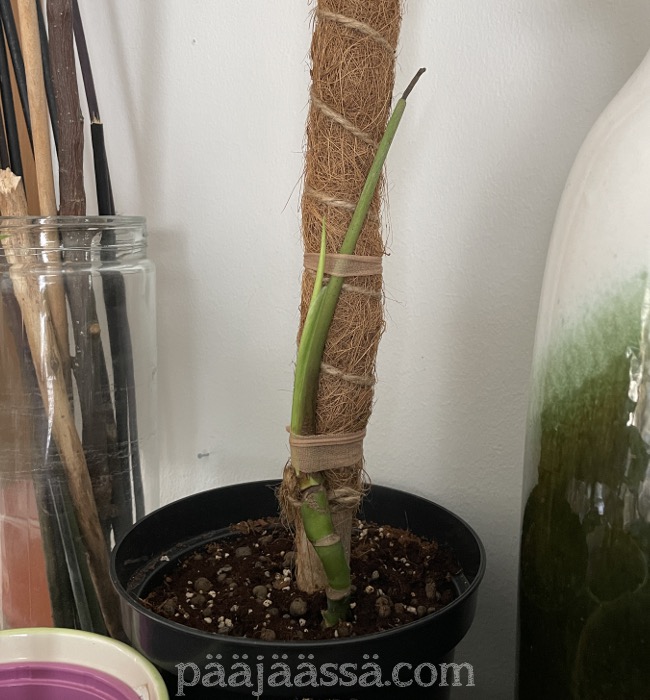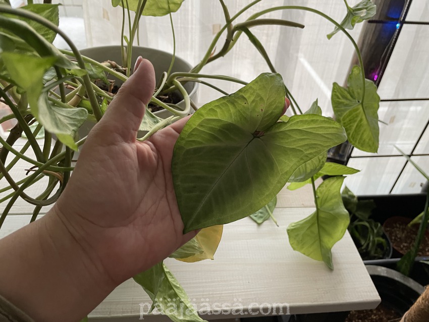 Tammikuun lopussa oli muutama todella kaunis ja aurinkoinen päivä. Tänäänkin aurinko vielä näyttäytyi kun päivä eteni. Siitäköhän se johtuukin, että peikonlehti teki heti uuden lehtivarren? Saattaa vaikka ollakin. Pitääkin vielä miettiä peikonlehden siirtoa. Kesällä se ei kyllä tule saamaan tuossa kohtaa valoa. Noniin, taas meinaa ajatukset karata. Ei kun takaisin Tellukselle!