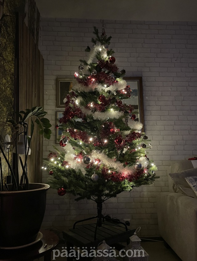 Myrskytuulien laannuttua päätin laittaa joulukuusen koristeet pois. Kevät saa nyt puolestani tulla, ja jotenkin taas tässä taitaa käydä niin, että jotain on laitettava kasvamaan. Niistä sitten joku toinen kerta lisää. Tuntuu vaan usein siltä, että mikään ei oikein mene suunnitelmien mukaan, niin kuin ei tämä joulukoristeasiakaan. Oli tarkoitus siivota kämppä sellaiselle tasolle, että siitä voi ottaa kuvia, sisustuksellisia joulukuvia siis. Kyllästyin itseeni ja siivosin joulukoristeet pois. Otin viimehetken kuvat muistoksi seuraavaa kertaa varten.
