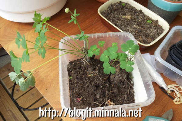 Meillä on yleensä vaihtareita kasvien kesken. Toisinaan saa tuttaviltaan jotain, eikä ole antaa mitään takaisin, ja toisinaan on sitten vaikka mitä. Tässä menee ukonkellon taimia läjä siperiankurjenmiekkaa vastaan. Saan toki myöhemmässä vaiheessa vielä lännenhopeapensaan, sekä humalaa ja tomaatintaimen. Kunhan kesä etenee pidemmälle, niin teen sitten tästä tuttavani pihasta oman postauksen tänne, jos hän sallii sen.