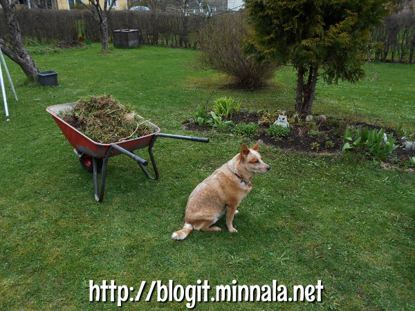 Siitä lähdetään, että pihalla tulee olla aina jokin kiva apulainen… tiedä sitten häntä, että onko tästä kyseisestä apurista enemmän haittaa kuin hyötyä. Tässä minun ”pikkuapulainen”, Foxi. Foxi piti mm huolta siitä, ettei aidatulle pihalle tullut ketään olemattomia ohikulkijoita, ja auttoi mielellään heinätupsujen trimmaamisessa kukkapenkin ympäriltä…
