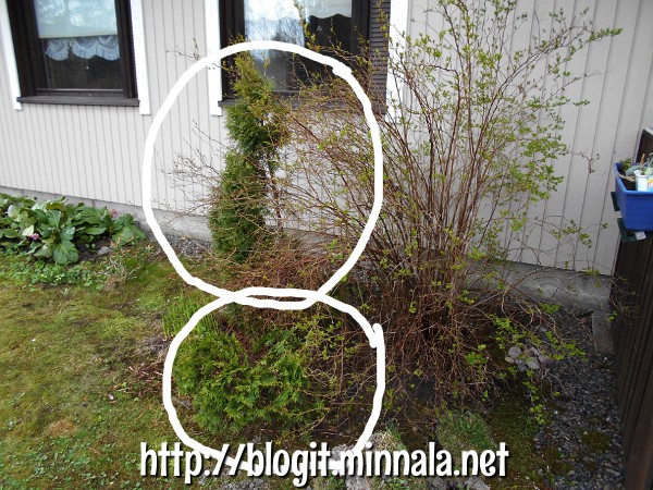 Nämä tuijat kaivan myös ylös, ja ne saa heivata mäkeen. Niissä ei juurikaan ole enää edes lehtiä, mutta tuttavani kertoi, että ne elpyvät suhteellisen helpolla. Joten mietin niiden siirtämistä toiseen paikkaan ja pian.
