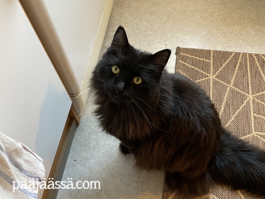 Voiko olla mitään suloisempaa kuin tällainen kissa? Noh, voi toki olla… ainoastaan siinä tapauksessa, että se olisi oma kissa! Nämä satunnaiset vierailijat ovat sitten kerta kaikkiaan niin ihania, että sydän ihan sulaa kun heidän kanssa saa olla toisinaan. Röllillä (kuvassa) on kuulemma samankaltaisia tapoja kotonakin, mitä täällä hoitopaikassa. Kun olen jääkaapin äärellä tekemässä jotain, niin hän tulee pummimaan jotain herkkupaloja. Noh, ainahan sieltä joku kinkkupalanen tippuu.