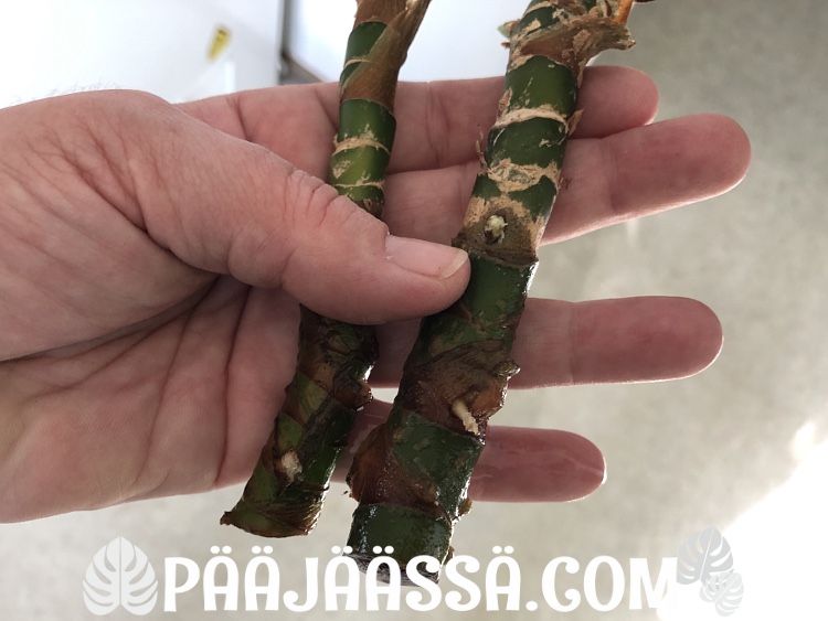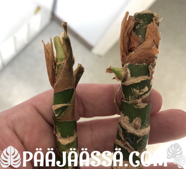 Toinen vehka, josta olen todella täpinöissäni on aarnipeikonlehti, eli Monstera Monkey Mask – Monstera adansonii. Sain sen vaihtarina sulkaköynnösvehkaan viime jouluna, ja se on lähtenyt nyt kasvamaan ihan hyvin. Pistokas oli ilmeisesti niin hyvä. Mutta, sehän olikin huonekasvikerhon jäseneltä saatu – hän varmasti tiesi mitä teki 🙂 Ja taas tämäkin oli hankintalistalla pelkästään lehtien takia.