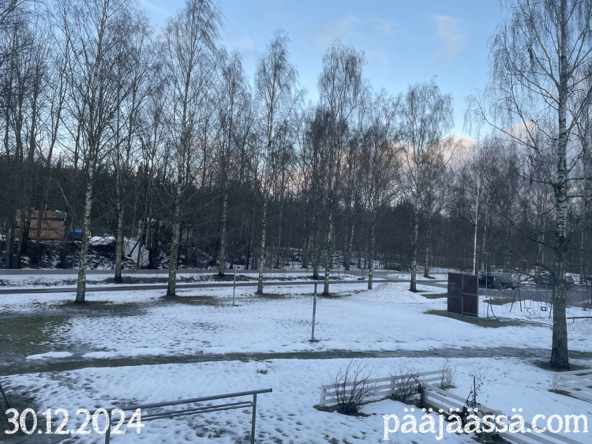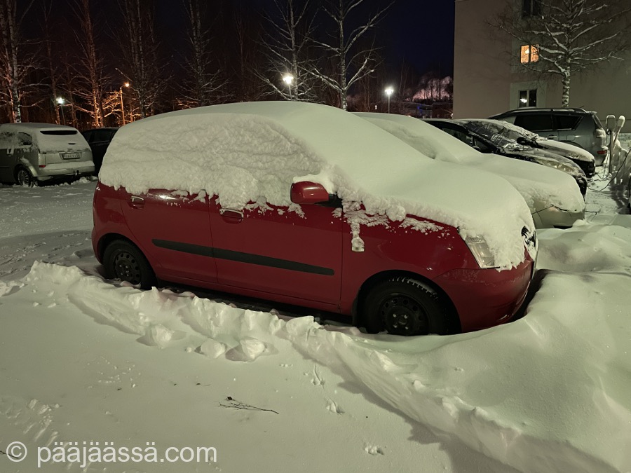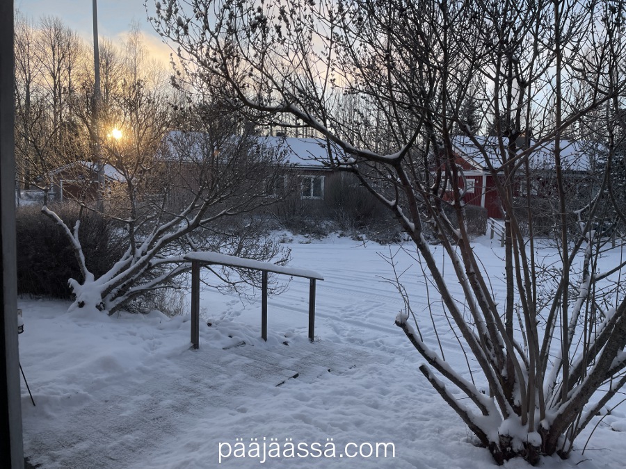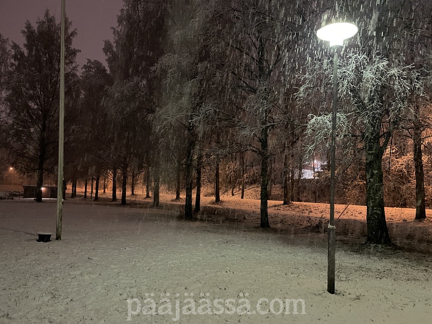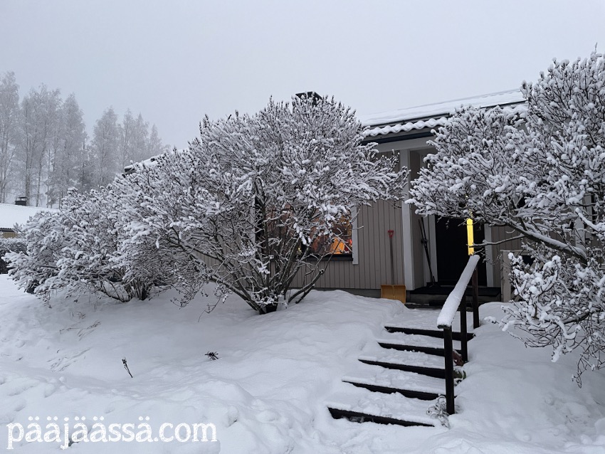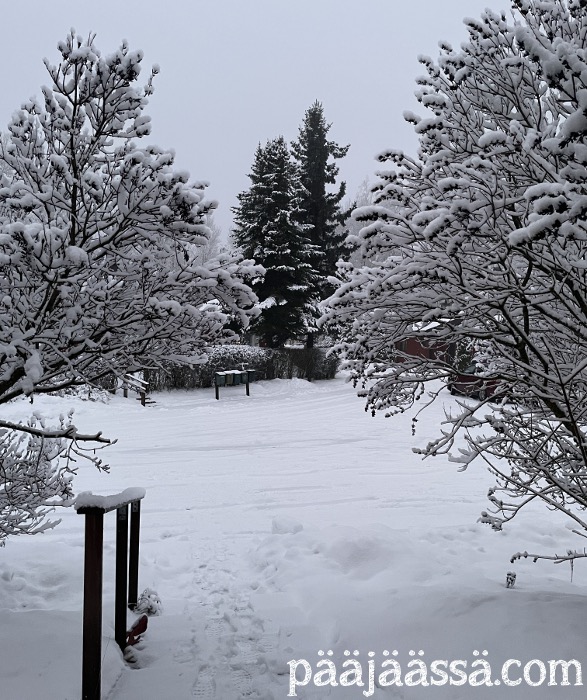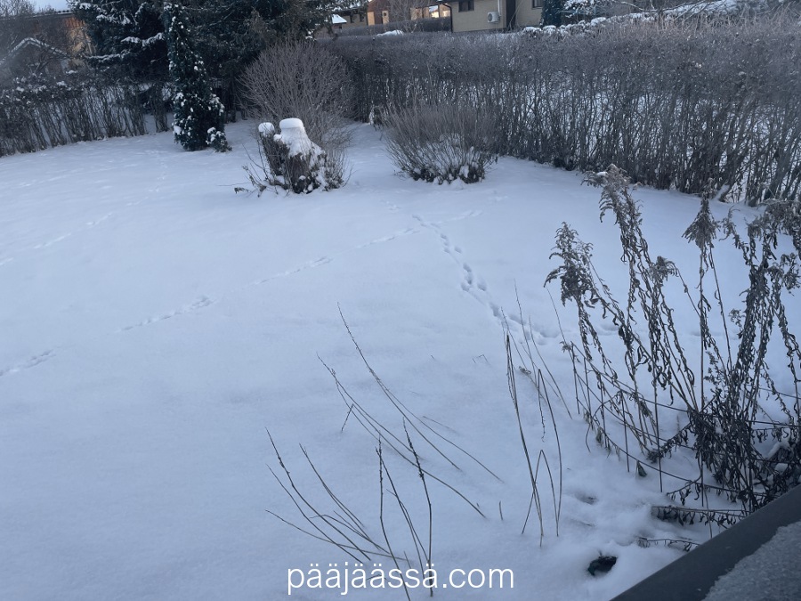 Ehdinpäs kirjoittamaan edellisessä artikkelissa, ettei lunta ole tiedossakaan. Noh, meni kait kaksi päivää kun lunta oli satanut sunnuntai-maanantain välisenä yönä ihan mukavasti, ja sade senkun jatkui vain. Niin ne ennusteet muuttuvat äkkiä, vaikka miten yrittäisi pysyä niiden mukana. Jäi vain nähtäväksi millainen lumi-inferno tänne oli taas tulossa. Jotenkin tuntuu siltä että maailman säätilanne on jatkuvasti aivan sekaisin, vaikka pitäähän täällä pohjolassa talvella lunta ollakin.