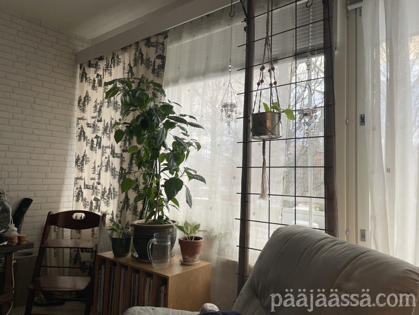 Olen varannut huonekasveille ihan oman paikan olohuoneen Kaakkois-nurkkaukseen. Kasvit suorastaan pääsevät kylpemään aamuauringossa. Ne tuntuvat viihtyvän siinä todella hyvin. Tietty, onhan niitä muuallakin asunnossani, mutta en ole oikein päässyt vielä niitä sijoittelemaan haluamiini paikkoihin. Ja nyt tietysti kuviot pitää ajatella uudelleen, kun joudun tästä mahdollisesti lähtemään. Harmittaa jo valmiiksi mitä joudun jättämään taakseni. Tämä tekee minut todella surulliseksi.