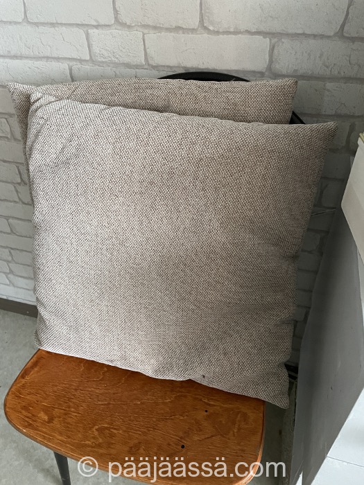 Samoin kyytiä saivat nämä kaksi sohvatyynyä, jotka ovat kulkeneet pitkin asuntoa jo ties kuinka monta vuotta ilman päämäärää.
