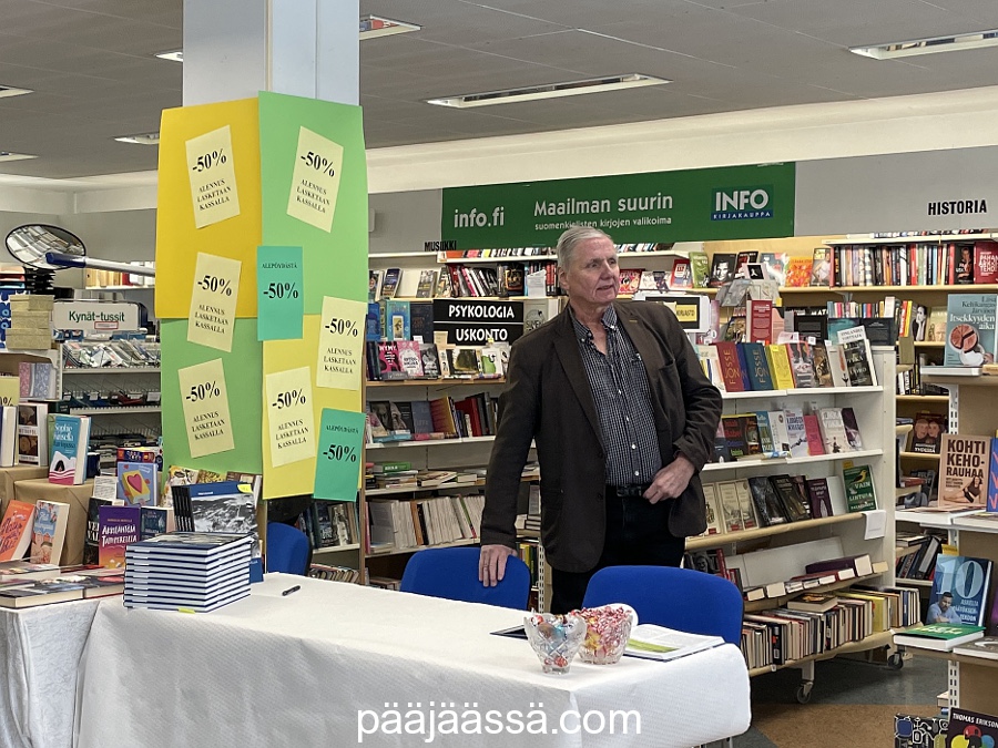 Edellisenä päivänä kävin hankkimassa tädilleni kirjan kirjakaupasta. Oli kirjanjulkistamispäivä, ja itse tekijäkin oli paikalla. Kirja oli Tapahtui kerran Imatralla ja kirjoittaja on Pekka Lehonkoski. Hän kertoi kuinka tarinat oli saatu kirjaan ja miltä ajalta ne olivat.