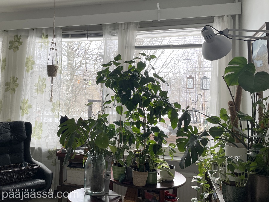 Huonekasveja alkoi ilmestyä kotiin vasta siinä vaiheessa, kun kissoilla oli hieman enemmän ikää. Sen lisäksi ne tuntuivat olevan onnellisia siitä, kun pääsivät ulos parvekkeelle kesäisin. Josta tulikin mieleen, että parveketta täytyisi alkaa siistiä, ettei pikkulinnut ala etsimään sieltä pesäpaikkoja. Tai vielä pahempaa, ampiaiset.