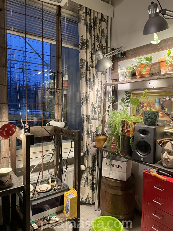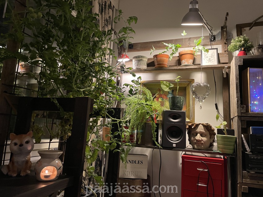 Pakastimen häipymisen jäkeen olen ajatellut, josko vähän järjestelisin paikkoja uudelleen. Tai en ihan kaikkia paikkoja, vaan juuri sen kohdan, mistä pakastin lähti. Siinä on nimittäin kulkuaukko eteisen ja olohuoneen välillä, jonka olen ”tukkinut” rakentamallani ladonovella (kuva joulukuulta). Jospa siirtäisin ladonoven keittiön ja olohuoneen väliin, jossa se olikin monta vuotta. Siinähän oli aikoinaan myös olohuoneen puolella akvaario, jota minulla ei ole ollut enää muutamaan vuoteen. Saisin olohuoneeseen enemmän tilaa sijoitella huonekaluja. Asia on harkinnassa. Pitää vähän mittailla saisko sille seinustalle vaikka sohvan.