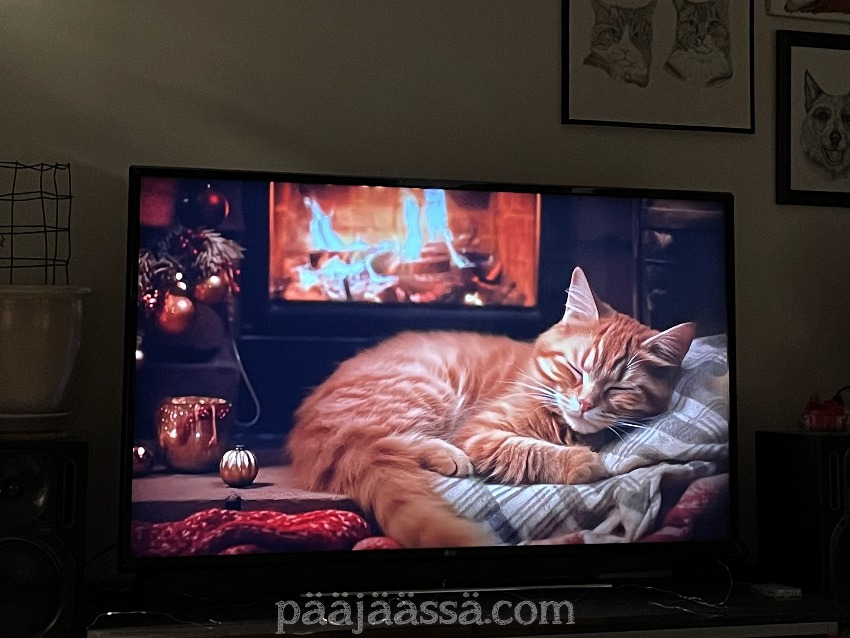 YouTubesta löytyi taas yksi ihana takkavideo, jossa on aivan saman näköinen kissa, mitä edesmennyt Spede-kissani oli. Videota on ollut jotenkin lohdullista katsoa. Ihan kun Spede olisi läsnä. Ehkäpä hän onkin jollain tapaa. Viisi vuotta siitäkin on kohta kulunut, kun hänestä jouduin luopumaan. Nämä videot ovat kyllä aivan ihania.