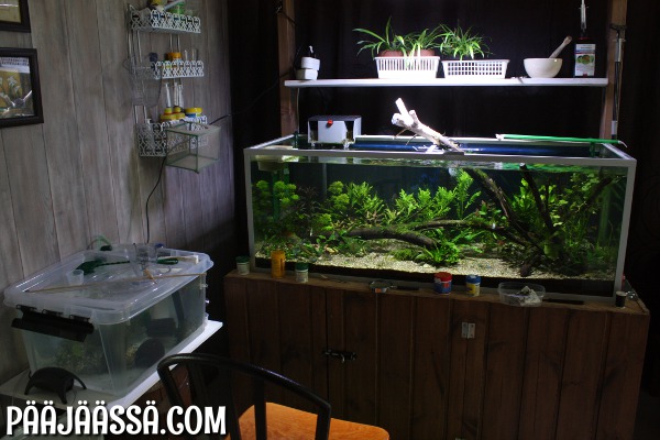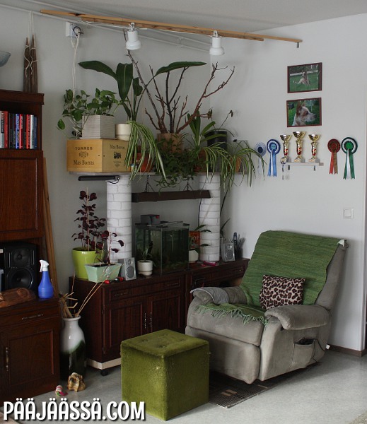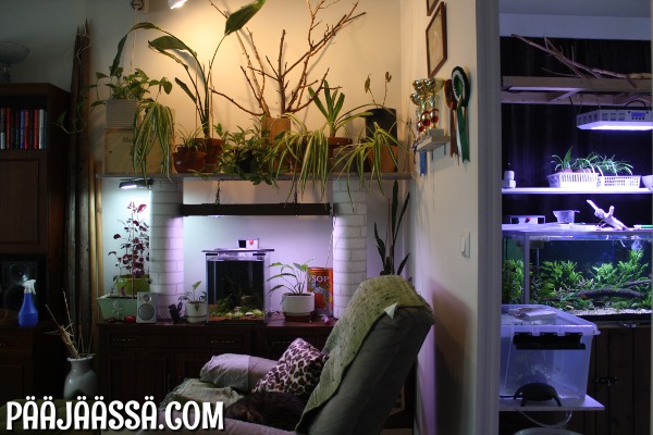 Sitten vielä tämä. Edellisen postauksen välissä on ehtinyt tapahtumaan vaikka mitä. Ensinnäkin serkkuni oli kylässä lähes viikon, ja sain häneltä avustusta huonekalujen siiretelyyn olohuoneessa. Kun kalusteet oli siirretty, tuli tieto, että tätini ”landelta” haluaisi luopua akvaariostaan. Rahkeet eivät enää riittäneet hoitamiseen. Noh, kun sattumoisin olin viikkoa aiemmin laittanut jo yhden altaan pystyyn, niin ei kun sen sitten purin, ja toin tätini akvaarion olkkariin. Sille löytyikin nyt paikka, koska olimme serkun kanssa juuri järjestelleet olkkarin uudelleen! Jo vain 😀 Mutta joo, tämä sitten taas oma postauksensa jossain vaiheessa. Ei taida pystyä tähän väliin kuromaan kuukautta kiinni mitä kaikkea on tapahtunut tai tehnyt. Tietokoneelta pois ollut aika on käytetty näet kämpän laittamiseen, mikä on hyvä asia, ja sittenhän sitä on taas jotain kirjoitettavaa tännekin 🙂