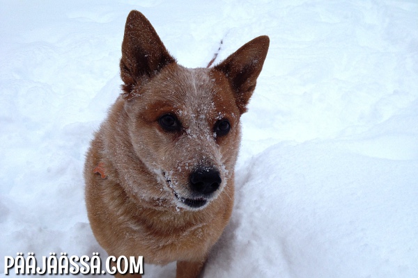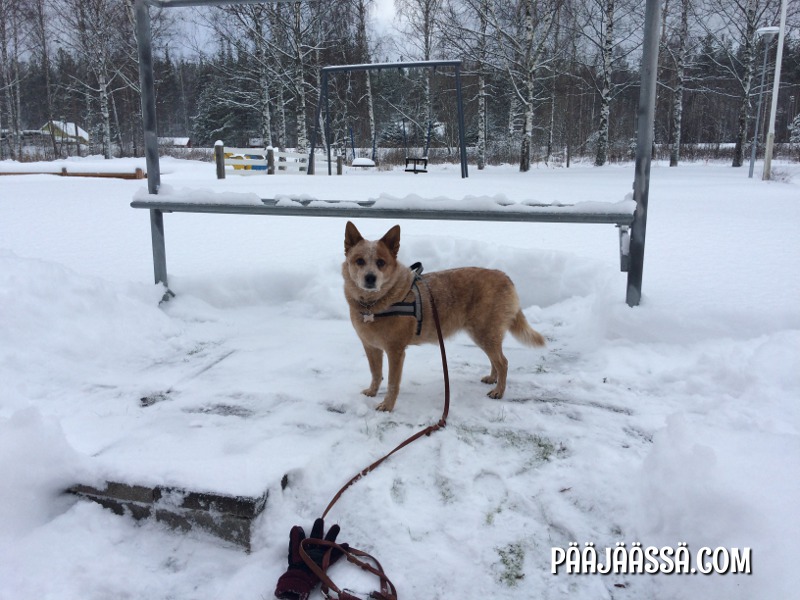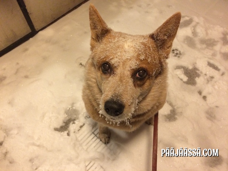 Arvatkaa vaan kuka oli lumentulosta aivan täpinöissään? 🙂 Nyt sitten tällä hetkellä voivotellaan etutassua, joka aina vähän ”kärsii” lumentulosta… täällä oli todella liukasta monta päivää, ja tietenkin tämä hökeltäjä aina näiden kelien aikaan venäyttää (tai jotain) tassunsa. Nyt sitten linkutellaan yhtä tassua, ja varsinkin silloin kun asiasta mainitaan.