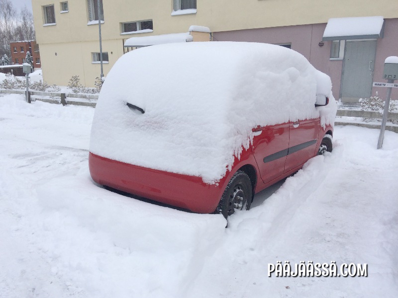 Lunta tulikin ihan kivasti… sai ihan urakalla pyyhkiä auton pintoja.